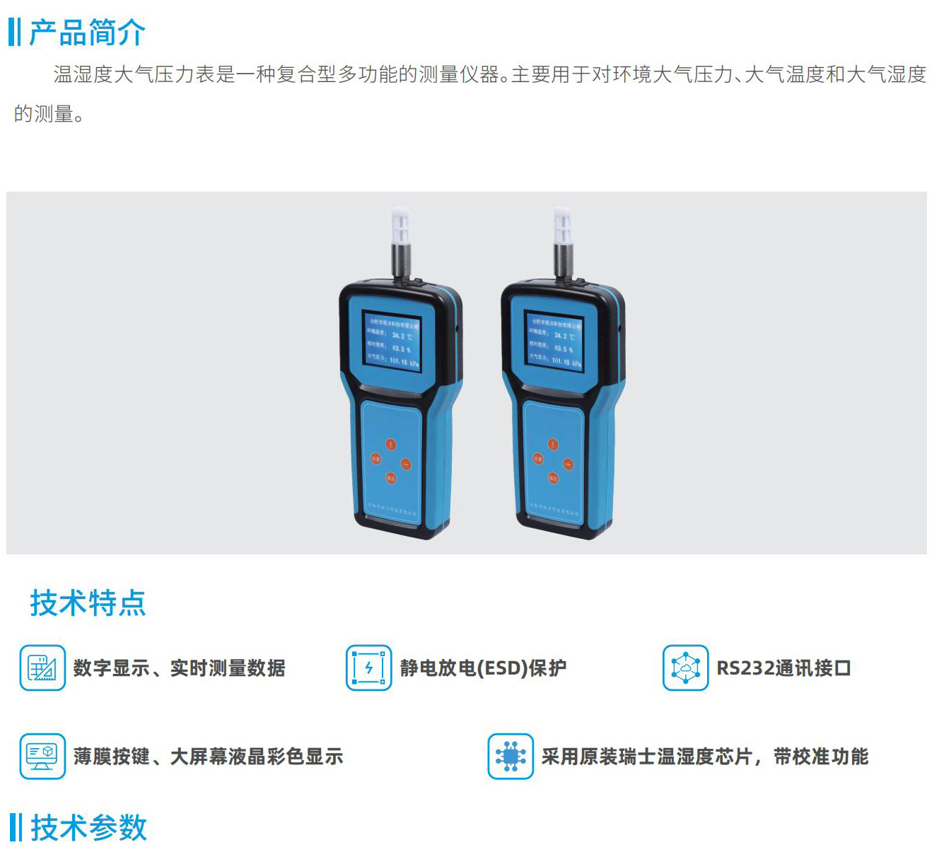 溫濕度大氣壓力表是一種復(fù)合型多功能的測量儀器。主要用于對(duì)環(huán)境大氣壓力、大氣溫度和大氣濕度的測量。